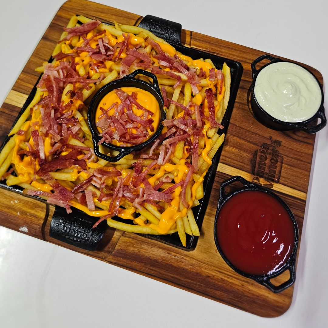 Sabor ao máximo, essa porção de fritas acompanha tiras de bacon bem assadas e o nosso cheddar especial. - Acompanha molhos