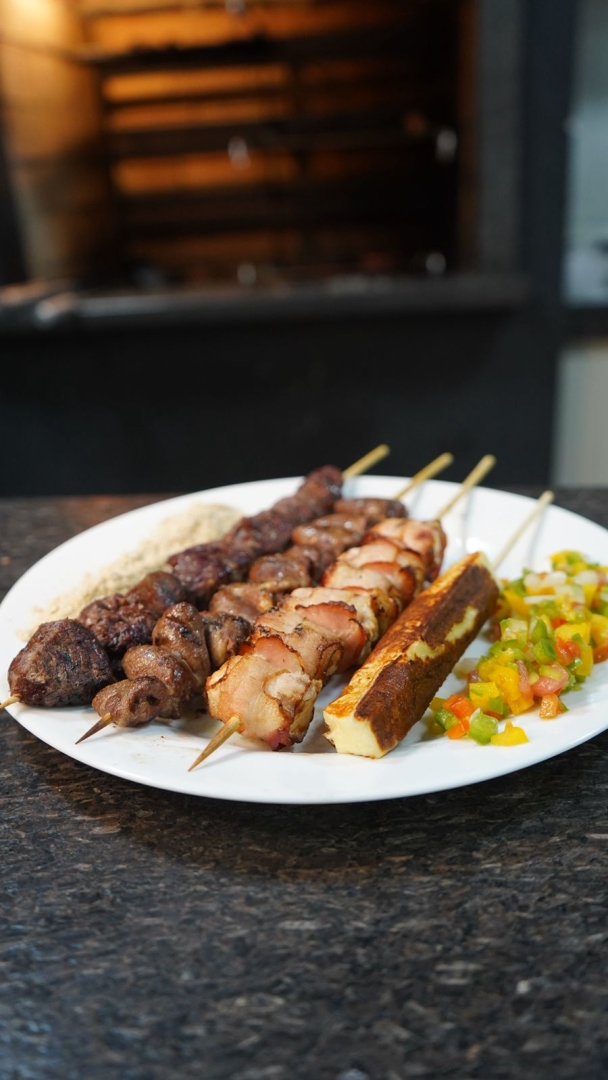 Combinação que une os sabores de um bom churrasco: 1 Espetinho de Alcatra 1 Espetinho de Coração 1 Espetinho de Frango com Bacon 1 Espetinho de Queijo Coalho Peça e viva esta experiência!