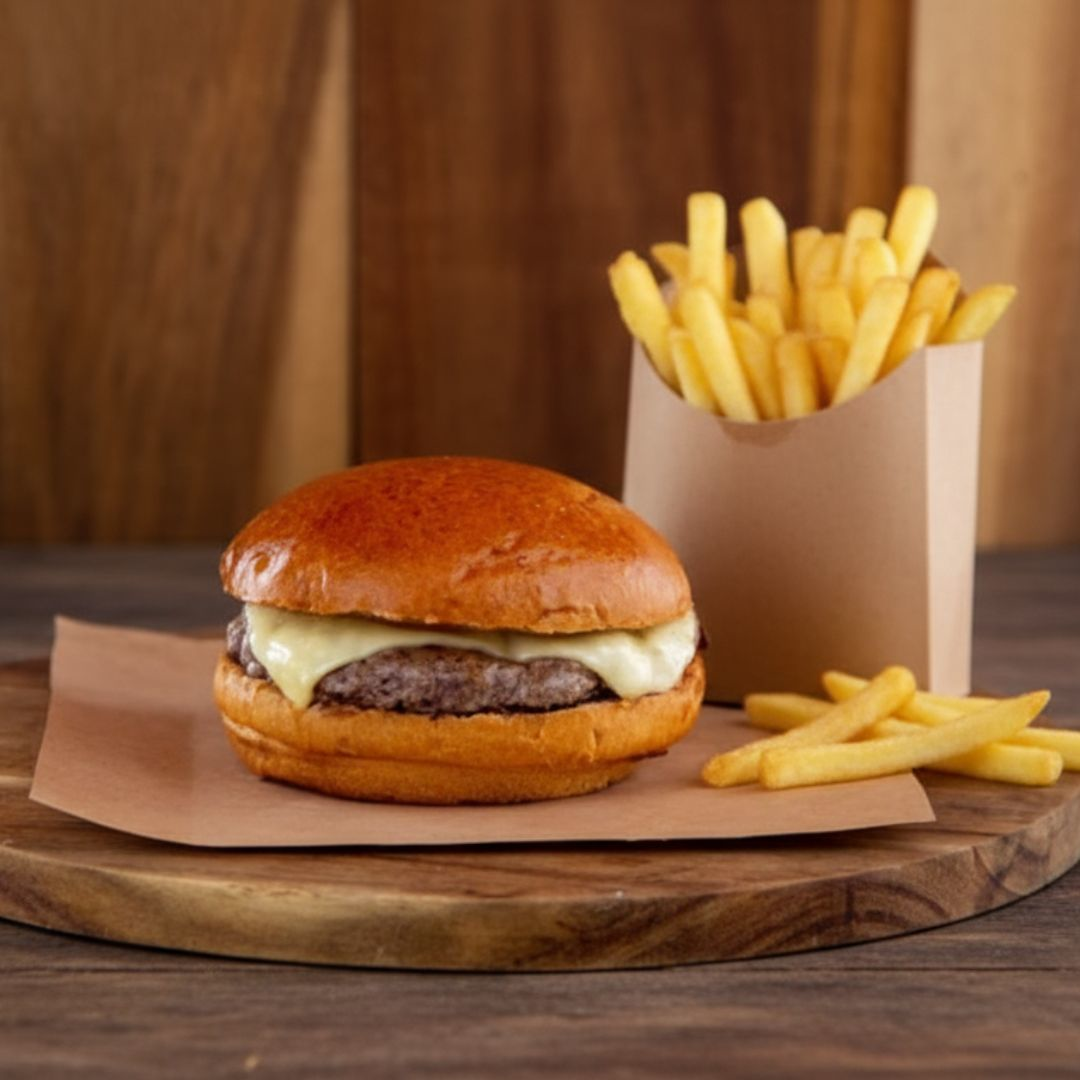 Um up no Simplicidade, que é feito com: - Molho da casa - Alface - Hambúrguer - Queijo Mussarela - Acompanha uma Mini Porção de Fritas (70g) Não passe vontade, peça agora mesmo!